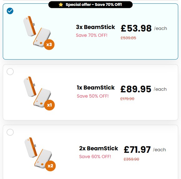 BeamStick UK is usually available through its official website and selected online retailers.